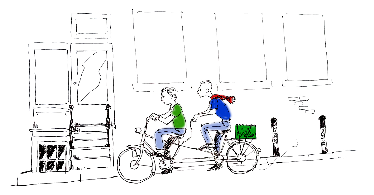Op weg naar de volgende op de lijst fietsen we langs een kroeg die café Kale heet, wat we supergrappig vinden want kaal betekent ook dronken in studentenbargoens en we zijn zelf ook al redelijk onderweg met de biertjes en dus is het onvermijdelijk dat we daar op het terras neerploffen en met een theatraal gebaar bier en één gehaktbal bestellen. Hilariteit alom vanwege de verbaasde smoel van de bediening over dat we er maar eentje bestellen, en we beginnen in het soort bui te raken dat zelfs willekeurige kreten en grappen over passerende tieten het de humordrempel over halen.