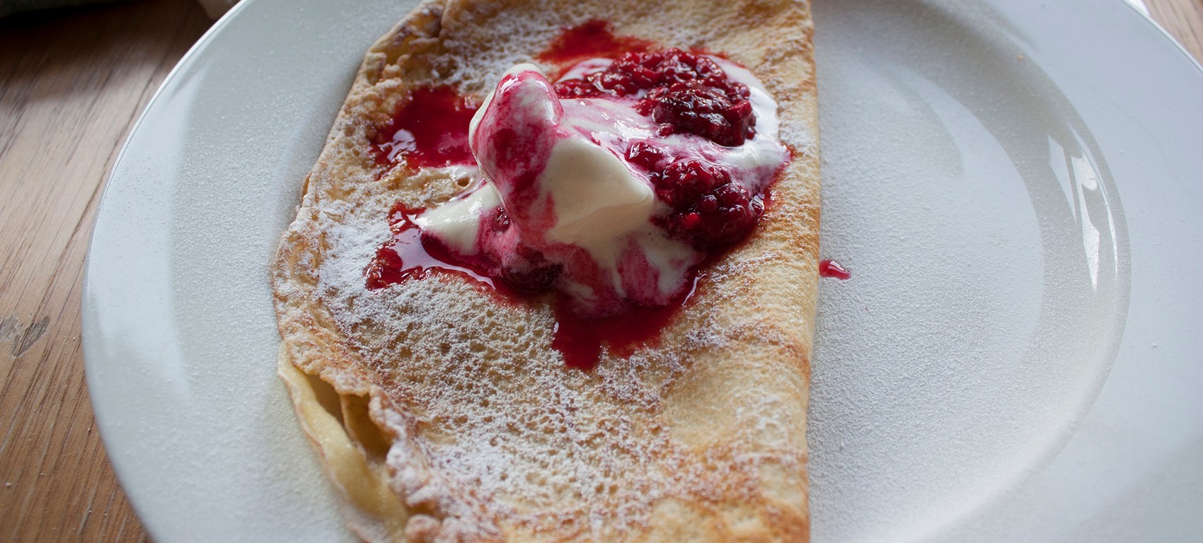 Er is een duidelijk verschil van mening tussen de Nederlanders en Amerikanen over wat een pannenkoek is. Amerikanen vinden ‘m dik en fluffy, met karnemelk en bakpoeder erin waardoor het een sponzig ding wordt dat perfect is om liters maple syrup mee op te zuigen. Niks mis mee. Maar in het Nederlands is een pannenkoek wat anders: een licht, dun, vrolijk plakje pret met poedersuiker. Of met andere fratsen zoals frambozen met vanilleijs.