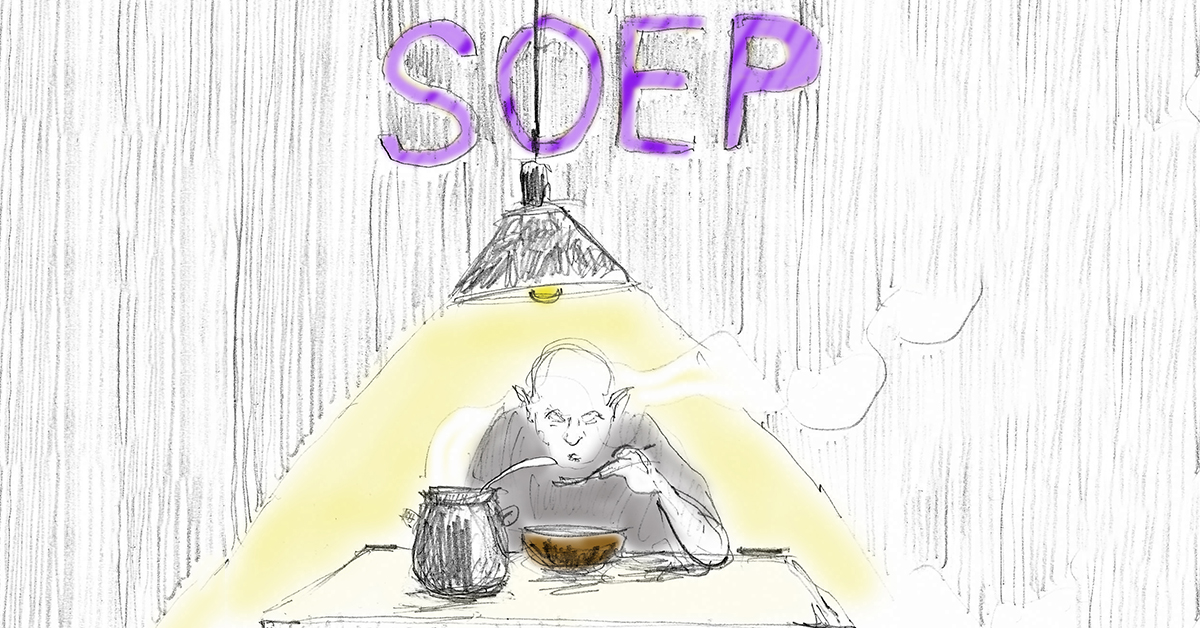 Kieper vijf minuten voordat je gaat eten nog even de laatste restjes groenten in de soep.